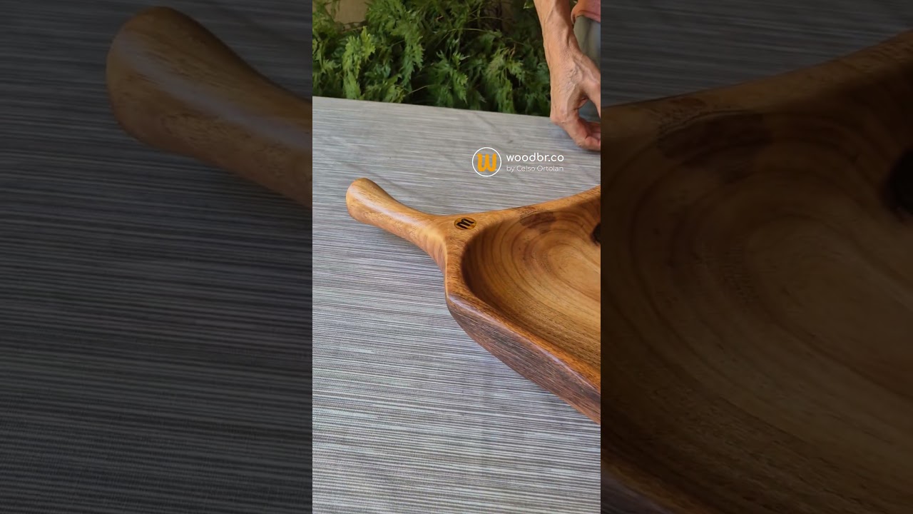 Peça artesanal esculpida em madeira maciça, proveniente do reaproveitamento consciente de troncos e galhos. Acabamento premium com polimento manual e aplicação de óleo mineral grau farmacêutico, atóxico e seguro para alimentos.