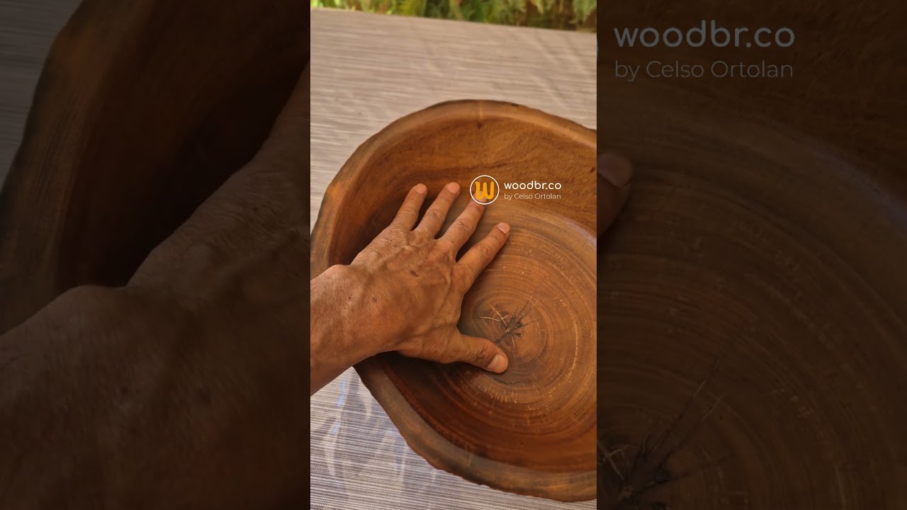 Peça artesanal esculpida em madeira maciça, proveniente do reaproveitamento consciente de troncos e galhos. Acabamento premium com polimento manual e aplicação de óleo mineral grau farmacêutico, atóxico e seguro para alimentos.