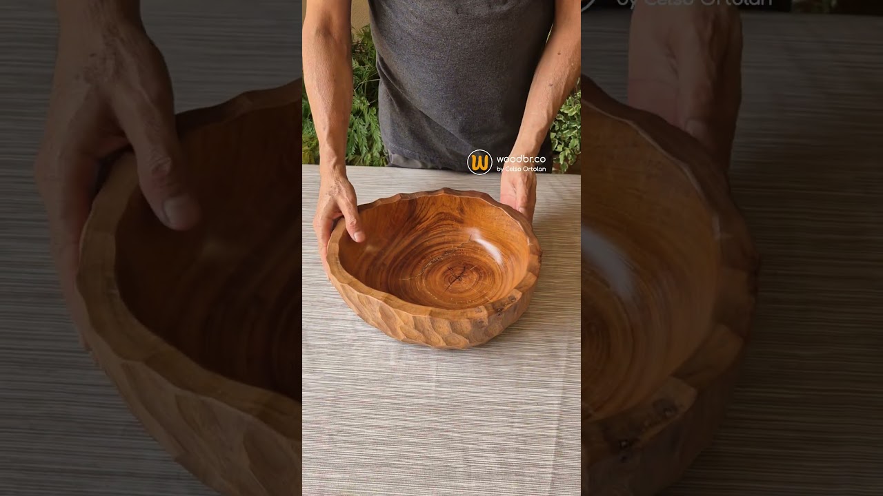 Peça artesanal esculpida em madeira maciça, proveniente do reaproveitamento consciente de troncos e galhos. Acabamento premium com polimento manual e aplicação de óleo mineral grau farmacêutico, atóxico e seguro para alimentos.