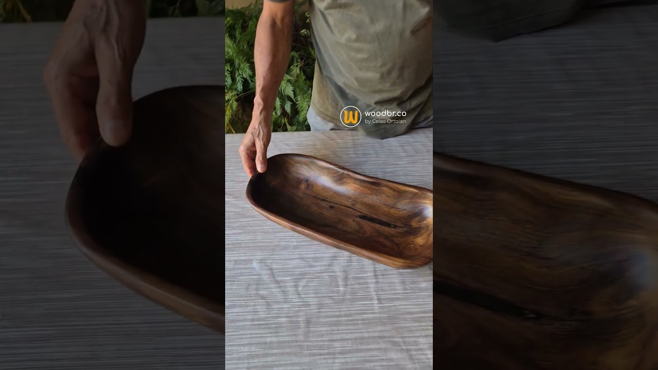 Peça artesanal esculpida em madeira maciça, proveniente do reaproveitamento consciente de troncos e galhos. Acabamento premium com polimento manual e aplicação de óleo mineral grau farmacêutico, atóxico e seguro para alimentos.
