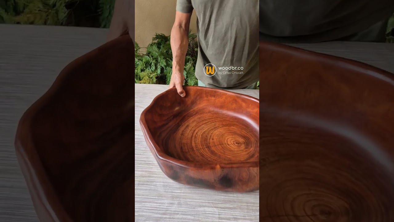 Peça artesanal esculpida em madeira maciça, proveniente do reaproveitamento consciente de troncos e galhos. Acabamento premium com polimento manual e aplicação de óleo mineral grau farmacêutico, atóxico e seguro para alimentos.