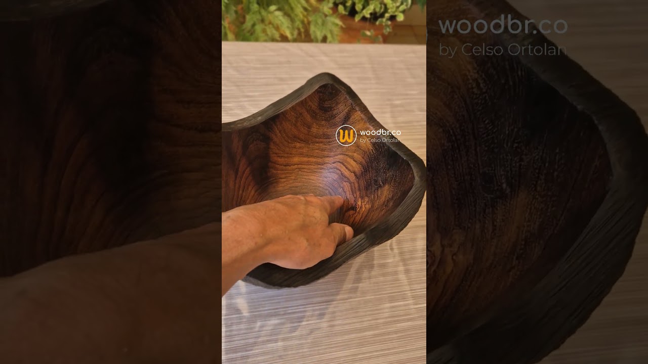 Peça artesanal esculpida em madeira maciça, proveniente do reaproveitamento consciente de troncos e galhos. Acabamento premium com polimento manual e aplicação de óleo mineral grau farmacêutico, atóxico e seguro para alimentos.