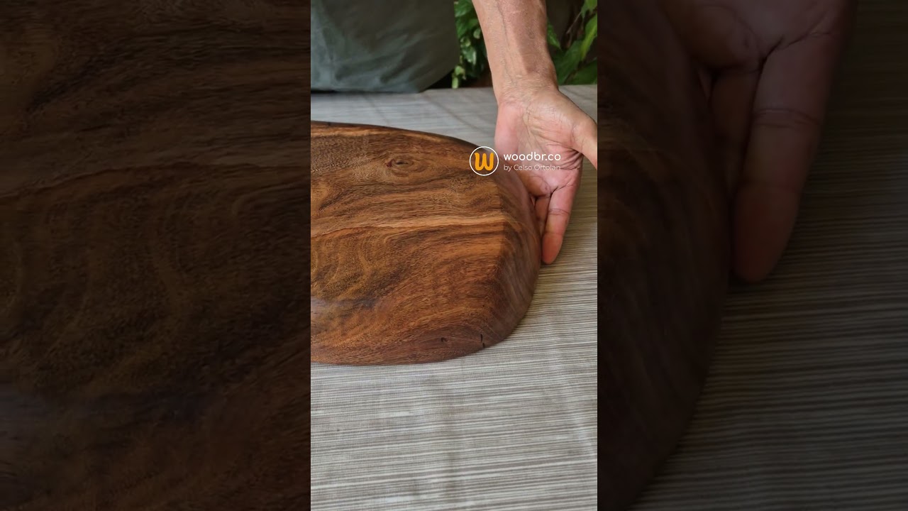 Peça artesanal esculpida em madeira maciça, proveniente do reaproveitamento consciente de troncos e galhos. Acabamento premium com polimento manual e aplicação de óleo mineral grau farmacêutico, atóxico e seguro para alimentos.