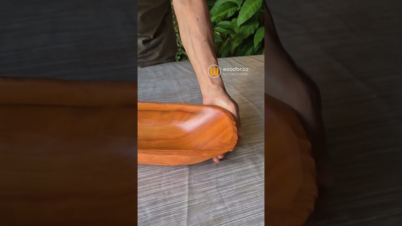 Peça artesanal esculpida em madeira maciça, proveniente do reaproveitamento consciente de troncos e galhos. Acabamento premium com polimento manual e aplicação de óleo mineral grau farmacêutico, atóxico e seguro para alimentos.
